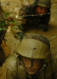 | Keywords: US Navy 050817-N-1261P-143 U.S. Navy Construction Electrician 2nd Class Ryan Gerdon low-crawls through mud-filled trenches as part of an obstacle course.jpg en Okinawa Japan Aug 17 2005 - U S Navy Construction Electrician 2nd Class Ryan Gerdon low-crawls through mud-filled trenches as part of an obstacle course at the Jungle Warfare Training Center JWTC located in the Northern Training Area on the island of Okinawa Petty Officer Gerdon is assigned to Naval Mobile Construction Unit Seven Four NMCB-74 U S Navy photo by Photographer's Mate 2nd Class Eric S Powell RELEASED 2005-08-17 050817-N-1261P-143 Navy http //www navy mil/view_image asp id 27452 U S Navy photo by Photographer's Mate 2nd Class Eric S Powell PD-USGov-Military-Navy Construction Electrician United States Navy Camp Gonsalves Obstacle courses |