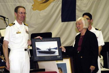 | Keywords: US Navy 050821-N-7281D-095 Commanding Officer, USS Ronald Reagan (CVN 76), Capt. James Symonds, presents Santa Barbara Mayor, Marty Blum, an award photo of USS Ronald Reagan.jpg en Santa Barbara Calif Aug 20 2005 - Commanding Officer USS Ronald Reagan CVN 76 Capt James Symonds presents Santa Barbara Mayor Marty Blum an award photo of USS Ronald Reagan at the Taste of Freedom dinner hosted by the Navy League aboard the Nimitz-class aircraft carrier USS Ronald Reagan CVN 76 The Navy League is a non-profit organization that has provided moral support recognition and family support for personnel in the Navy Marine Corps Coast Guard and the U S Flag Merchant Marine for over 100 years U S Navy photo by Photographer's Mate LaQuisha S Davis RELEASED 2005-08-20 050821-N-7281D-095 Navy http //www navy mil/view_image asp id 27398 U S Navy photo by Photographer's Mate LaQuisha S Davis PD-USGov-Military-Navy Images from US Navy location Santa Barbara Calif James Symonds |