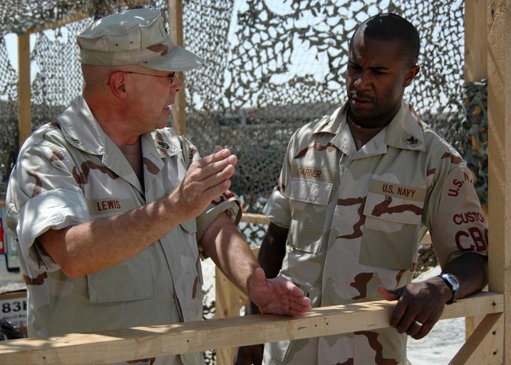 | Keywords: US Navy 050826-N-6628F-001 Chief Storekeeper Maryland Lewis, left, assigned to Naval Expeditionary Logistics Support Force (NAVELSF) Forward Oscar, discusses daily operations.jpg en Camp Arifjan Kuwait Aug 26 2005 Chief Storekeeper Maryland Lewis left assigned to Naval Expeditionary Logistics Support Force NAVELSF Forward Oscar discusses daily operations with Storekeeper 1st Class Ronald Garner during shift turn over NAVELSF is performing the customs mission for the U S Army throughout Kuwait and Iraq U S Navy photo by Photographer's Mate 1st Class James E Finnigan RELEASED 2005-08-26 050826-N-6628F-001 Navy http //www navy mil/view_image asp id 27482 U S Navy photo by Photographer's Mate 1st Class James E Finnigan PD-USGov-Military-Navy Camp Arifjan Storekeeper Camouflage nettings |