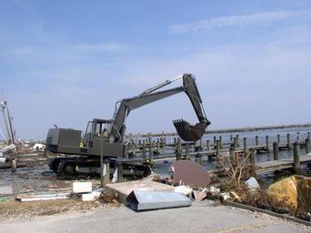 | Keywords: US Navy 050902-N-0000X-018 A U.S. Navy Seabee uses a track hoe to remove debris from Hurricane Katrina near the marina on board on board Naval Construction Battalion Center (NCBC) Gulfport, Miss.jpg en Gulfport Miss Sept 2 2005 A U S Navy Seabee uses a track hoe to remove debris from Hurricane Katrina near the marina on board on board Naval Construction Battalion Center NCBC Gulfport Miss NCBC functions as a support for operating units of the Naval Construction Force It supports various Naval Mobile Construction battalions the Naval Construction Training Center and other smaller tenant activities A Category 4 hurricane Katrina came ashore on Aug 29 near the Louisiana bayou town of Buras U S Navy photo RELEASED 2005-09-02 050902-N-0000X-018 Navy http //www navy mil/view_image asp id 27782 U S Navy photo PD-USGov-Military-Navy Naval Construction Battalion Center Gulfport Tracked 360 degree diggers |