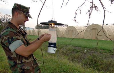 | Keywords: US Navy 050910-N-2653P-132 Forward Deployable Preventive Medicine Unit (FDPMU) East, removes a Light Trap provided by the Centers for Disease Control (CDC) from a tent city area on board NAS JRB New Orleans.jpg en Naval Air Station NAS Joint Reserve Base JRB New Orleans La Sept 10 2005 - Preventative Medicine Technician PMT Hospital Corpsman 1st Class Jonathan Wells assigned to Forward Deployable Preventive Medicine Unit FDPMU East removes a Light Trap provided by the Centers for Disease Control CDC from a tent city area on board NAS JRB New Orleans The FDPMU is assisting the CDC and the Louisiana Department of Public Health to eliminate vector-borne disease and other insect-related problems associated with Louisiana s mosquito population Diseases like West Nile Virus can be transmitted by mosquitoes which thrive in wet ecological terrain like that inherent to Louisiana U S Navy photo by Journalist 1st Class James Pinsky RLEASED 050910-N-2653P-132 Navy http //www navy mil/view_image asp id 28303 U S Navy photo PD-USGov-Military-Navy Deployable Rapid Assembly Shelter Mosquito control Naval Air Station Joint Reserve Base New Orleans Traps for flying insects |