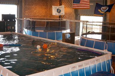 | Keywords: US Navy 050918-N-0793G-001 A Naval Construction Battalion Center Gulfport facility is currently the temporary home for four displaced Atlantic Bottlenose dolphins.jpg en Gulfport Miss Sept 18 2005 A Naval Construction Battalion Center Gulfport facility is currently the temporary home for four displaced Atlantic Bottlenose dolphins U S Navy Marine Mammal Program personnel from San Diego Calif installed three aboveground pools along with other necessary filtration equipment needed to care for sea mammals Sept 17 The four dolphins Kelly Noah Jackie and Toni spent the last two and a half weeks in the Gulf of Mexico swept out to sea by a wave reported to be forty feet high during Hurricane Katrina Because these dolphins are from a captive facility they do not forage for food or necessarily have the survival skills needed to avoid predators or boat traffic Since they were spotted off the gulf coast on Saturday Sept 10 Marine Life Aquarium trainers and National Oceanic Atmospheric Administration NOAA Fisheries Service biologists feed the dolphins several times a day from a NOAA vessel U S Navy photo by Journalist 3rd Class Chris Gethings RELEASED 2005-09-18 050918-N-0793G-001 Navy http //www navy mil/view_image asp id 28305 U S Navy photo by Journalist 3rd Class Chris Gethings PD-USGov-Military-Navy Marine Life Oceanarium Behavioral enrichment animals Naval Construction Battalion Center Gulfport United States Navy Marine Mammal Program Mammals of Mississippi |