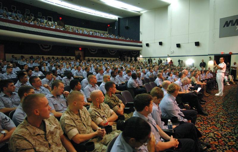 | Keywords: US Navy 050927-N-2383B-094 Chief of Naval Operations (CNO) Adm. Mike Mullen speaks to junior enlisted Sailors and Marines during a visit to Naval Air Station Oceana, Va.jpg en Virginia Beach Va Sept 27 2005 - Chief of Naval Operations CNO Adm Mike Mullen speaks to junior enlisted Sailors and Marines during a visit to Naval Air Station Oceana Va Adm Mullen told the Sailors and Marines how much he appreciates their service and how change in the Navy is a constant and of his expectation that every Sailor and Marine is a leader The CNO was in Virginia Beach visiting with junior enlisted personnel and meeting with the senior enlisted and officer community U S Navy photo by Chief Photographer's Mate Johnny Bivera RELEASED 2005-09-27 050927-N-2383B-094 Navy http //www navy mil/view_image asp id 28600 U S Navy photo by Chief Photographer's Mate Johnny Bivera PD-USGov-Military-Navy People at Naval Air Station Oceana Michael G Mullen in 2005 |