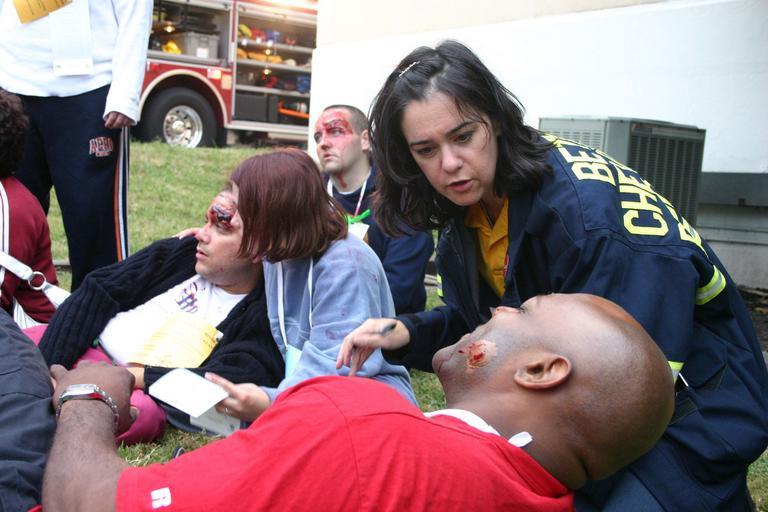 | Keywords: US Navy 050929-N-0000W-001 Sailors assigned to the National Naval Medical Center, participate as victims and first responders in a disaster drill.jpg en Bethesda Md Sept 29 2005 Sailors assigned to the National Naval Medical Center participate as victims and first responders in a disaster drill More than 6 000 Sailors and civilian staff for the medical center along with staff from nearby medical facilities took part in the exercise that simulated a terrorist attack in the National Capital Area The training evolution tested the response treatment and communication interoperability between more than 20 emergency units including local county fire and rescue services U S Navy photo by Mr Chris Walz RELEASED 2005-09-29 050929-N-0000W-001 Navy http //www navy mil/view_image asp id 28681 U S Navy photo by Mr Chris Walz PD-USGov-Military-Navy National Naval Medical Center |