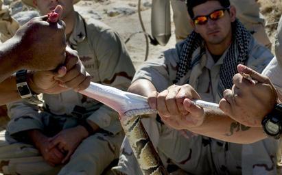 | Keywords: US Navy 051004-N-6901L-009 Operations Specialist 2nd Darryl Hickman and AE1 Ryan Johnson skin a ball python snake during a food procurement lesson.jpg en El Centro Calif Oct 4 2005 - Operations Specialist 2nd Darryl Hickman and AE1 Ryan Johnson skin a ball python snake during a food procurement lesson part of their desert survival training Image appeared in the March 2006 issue of All Hands U S Navy photo by All Hands Photographer's Mate 1st Class Michael Larson RELEASED 2005-10-04 051004-N-6901L-009 Navy http //www navy mil/view_image asp id 32996 U S Navy photo by All Hands Photographer's Mate 1st Class Michael Larson PD-USGov-Military-Navy Snake skins Operations Specialist United States Navy Naval Air Facility El Centro Snakes as food |