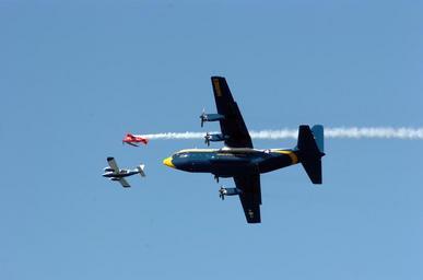 | Keywords: US Navy 051006-N-6843I-423 The U.S. Marine Corps C-130 Hercules, Fat Albert, assigned to the U.S. Navy ^ldquo,Blue Angels^rdquo, flight demonstration team.jpg en San Francisco Oct 6 2005 - The U S Marine Corps C-130 Hercules Fat Albert assigned to the U S Navy Blue Angels flight demonstration team flies alongside two civilian aircraft over San Francisco Bay during an air show practice for the city s Fleet Week celebration Fleet Week is a 5-day celebration is held annually to recognize the contributions and sacrifices made by members of the Armed Forces U S Navy photo by Journalist Seaman S C Irwin RELEASED 2005-10-06 051006-N-6843I-423 Navy http //www navy mil/view_image asp id 28790 U S Navy photo by Journalist Seaman S C Irwin PD-USGov-Military-Navy Blue Angels in the San Francisco Bay Area Fat Albert C-130T Hercules Fleet Week San Francisco 2005 |