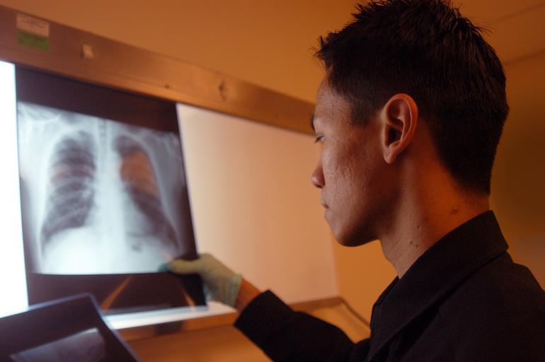 Keywords: US Navy 051012-N-9293K-001 U.S. Navy Hospital Corpsman 2nd Class Michael Kiamzon of Cerritus, Calif., examines a chest X-Ray.jpg en Everett Wash June 30 2005 U S Navy Hospital Corpsman 2nd Class Michael Kiamzon of Cerritus Calif examines a chest X-Ray at the Naval Health Clinic's Radiology Department on board Naval Station Everett Wash The radiology department provides Sailors the opportunity to be looked at right away after an injury or possible broken bone U S Navy photo by Photographer's Mate 3rd Class Jacob J Kirk RELEASED 2005-06-30 051012-N-9293K-001 Navy http //www navy mil/view_image asp id 28860 U S Navy photo by Photographer's Mate 3rd Class Jacob J Kirk PD-USGov-Military-Navy Naval Station Everett Hospital Corpsman X-rays of the chest