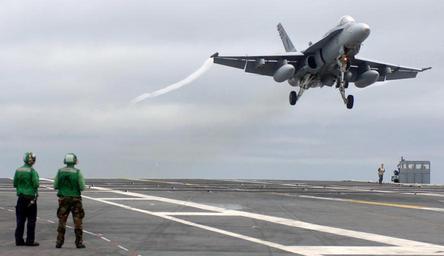| Keywords: US Navy 051013-N-5345W-073 Air Department personnel watch as an F-A-18A- Hornet, assigned to the Silver Eagles of Marine Fighter Attack Squadron One One Five (VMFA-115), approaches on a touch-and-go pass.jpg en Atlantic Ocean Oct 13 2005 - Air Department personnel watch as an F/A-18A+ Hornet assigned to the Silver Eagles of Marine Fighter Attack Squadron One One Five VMFA-115 approaches on a touch-and-go pass during flight operations aboard the Nimitz-class aircraft carrier USS Harry S Truman CVN 75 Truman is currently conducting carrier qualifications and sustainment training with embarked Carrier Air Wing Three CVW-3 off the East Coast of the United States U S Navy photo by Photographer's Mate 3rd Class Kristopher Wilson RELEASED 2005-10-13 051013-N-5345W-073 Navy http //www navy mil/view_image asp id 28970 U S Navy photo by Photographer's Mate 3rd Class Kristopher Wilson PD-USGov-Military-Navy Aboard USS Harry S Truman CVN-75 |