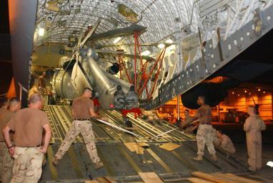| Keywords: US Navy 051015-N-5863B-002 U.S. Navy helicopter loaded onto transport aircraft bound for Pakistan earthquake relief efforts.jpg en Manama Bahrain Oct 15 2005 - Aviation Structural Mechanic Devon Kimble a native of Denver Colo and Aviation Machinist Mate Roderick Woods a native of Poplar Bluff Mo control an MH-60S Seahawk helicopter as it is loaded onto a U S Air Force C-17 Globemaster III Oct 15 The Seahawk belonging to Helicopter Sea Combat Squadron Two Six HSC-26 will help deliver medical supplies water and tents to earthquake victims in Pakistan In addition to providing support as part of maritime security operations in the region the squadron will deploy 25 Sailors and two MH-60S helicopters to help those in need in Pakistan The United States government is participating in a multinational humanitarian assistance and support effort lead by the Pakistani Government to bring aid to victims of the devastating earthquake that struck the region Oct 8 2005 U S Navy photo by Photographer s Mate 2nd Class Kim Bennett RELEASED 2005-10-15 051015-N-5863B-002 Navy http //www navy mil/view_image asp id 28935 U S Navy photo by Photographer s Mate 2nd Class Kim Bennett PD-USGov-Military-Navy 2005 Kashmir earthquake relief efforts US Navy in Manama Bahrain MH-60S Seahawk Transport of helicopters by Boeing C-17 Globemaster III Helicopter Sea Combat Squadron 26 United States Navy |
