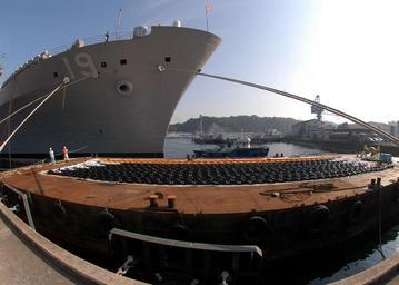 | Keywords: US Navy 051104-N-9860Y-024 A barge is transferred alongside the command ship USS Blue Ridge (LCC 19), as workers prepare to install a new 12-shot anchor chain and golden anchor.jpg en Yokosuka Japan Nov 4 2005 - A barge is transferred alongside the command ship USS Blue Ridge LCC 19 as workers prepare to install a new 12-shot anchor chain and golden anchor Blue Ridge is forward deployed to Yokosuka Japan and is currently undergoing Selective Restricted Availability U S Navy photo by Photographer's Mate 3rd Class Tucker M Yates RELEASED 2005-11-04 051104-N-9860Y-024 Navy http //www navy mil/view_image asp id 29663 U S Navy photo by Photographer's Mate 3rd Class Tucker M Yates PD-USGov-Military-Navy United States Fleet Activities Yokosuka Aboard USS Blue Ridge LCC-19 Anchor chains Retention Excellence Award |