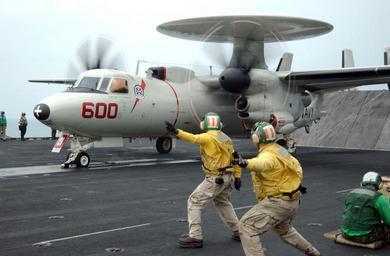 | Keywords: US Navy 051115-N-6484E-003 Two catapult shooters give the signal to launch an E-2C Hawkeye.jpg en Persian Gulf Nov 15 2005 - Two catapult shooters give the signal to launch an E-2C Hawkeye assigned to the Bear Aces of Carrier Airborne Early Warning Squadron One Two Four VAW-124 from the flight deck of the Nimitz-class aircraft carrier USS Theodore Roosevelt CVN 71 Roosevelt and embarked Carrier Air Wing Eight CVW-8 are currently underway in the Persian Gulf supporting Operation Steel Curtain a joint U S -Iraqi military offensive aimed at preventing cells of Al Qaeda from entering Iraq through the Syrian border U S Navy photo by Photographer's Mate Airman Stephen Early RELEASED 2005-11-15 051115-N-6484E-003 Navy http //www navy mil/view_image asp id 29996 U S Navy photo by Photographer's Mate Airman Stephen Early PD-USGov-Military-Navy USS Theodore Roosevelt CVN-71 flight deck Northrop Grumman E-2C Hawkeye aircraft carrier take-offs Airborne Early Warning Squadron 124 United States Navy |
