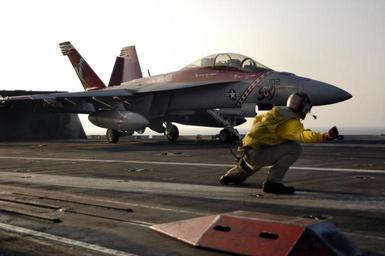 | Keywords: US Navy 051128-N-9389D-025 A catapult shooter gives the launch signal to an F-A-18F Super Hornet.jpg en Pacific Ocean Nov 28 2005 - A catapult shooter gives the launch signal to an F/A-18F Super Hornet assigned to the Diamondbacks of Strike Fighter Squadron One Zero Two VFA-102 on the flight deck of the conventionally powered aircraft carrier USS Kitty Hawk CV 63 Kitty Hawk and embarked Carrier Air Wing Five CVW-5 are currently conducting operations in the Western Pacific Ocean U S Navy photo by Photographer's Mate Airman Benjamin Dennis RELEASED 2005-11-28 051128-N-9389D-025 Navy http //www navy mil/view_image asp id 30254 U S Navy photo by Photographer's Mate Airman Benjamin Dennis PD-USGov-Military-Navy Aboard USS Kitty Hawk CV-63 Photographs by Benjamin Dennis Strike Fighter Squadron 102 United States Navy |