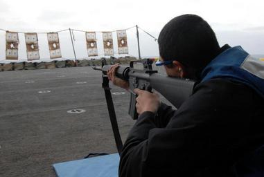 | Keywords: US Navy 051213-N-3455P-002 irman Danrey White, fires an M-16 semi-automatic machine gun during weapons certifications aboard the amphibious assault ship USS Boxer (LHD 4).jpg en Pacific Ocean Dec 13 2005 - Airman Danrey White fires an M-16 semi-automatic machine gun during weapons certifications aboard the amphibious assault ship USS Boxer LHD 4 Boxer is currently at sea conducting shipboard training and flight deck qualifications U S Navy photo by Photographer's Mate Airman Paul Polach RELEASED 2005-12-13 051213-N-3455P-002 Navy http //www navy mil/view_image asp id 30801 U S Navy photo by Photographer's Mate Airman Paul Polach PD-USGov-Military-Navy Aboard USS Boxer LHD-4 Males with M16 rifle |