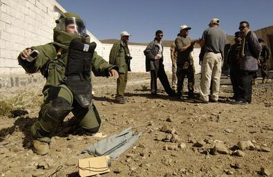 | Keywords: US Navy 051214-F-7234P-064 Yemen Explosive Ordinance Disposal (EOD) team members watch, U.S. Navy Petty Officer 2nd Class Frank Fazalore positions a device that will destroy a simulated Improvised Explosive Device (IED).jpg en Sana Yemen Dec 14 2005 - Yemen Explosive Ordnance Disposal EOD team members watch U S Navy Petty Officer 2nd Class Frank Fazalore positions a device that will destroy a simulated Improvised Explosive Device IED U S Navy EOD team members assigned to Combined Joint Task Force-Horn of Africa from Camp Lemonier Djibouti participate in an exercise with members of Yemen's Ministry of the Interior EOD team The exercise enhances the capabilities of the EOD teams to counter terrorism while strengthening relationships between allies U S Air Force photo by Staff Sgt Stacy L Pearsall RELEASED 2005-12-14 051214-F-7234P-064 Navy http //www navy mil/view_image asp id 30855 U S Navy photo PD-USGov-Military-Navy United States Navy images from Sana'a Yemen United States Navy Explosive Ordnance Disposal Bomb suits Taken with Nikon D2X |