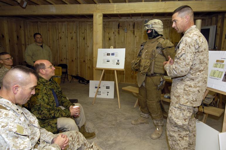 | Keywords: US Navy 060128-N-2568S-003 Secretary of the Navy (SECNAV) Dr. Donald C. Winter receives a briefing from Lt. Col. Chris Wagner on the personal protective gear worn by Marines operating in Iraqi.jpg en Al Taqaddum Iraq Jan 28 2006 - Secretary of the Navy SECNAV Dr Donald C Winter receives a briefing from Lt Col Chris Wagner on the personal protective gear worn by Marines operating in Iraqi SECNAV is in the Middle East to see first-hand the conditions morale and equipment in use by Navy and Marine Corps personnel deployed to the region U S Navy photo by Chief Journalist Craig P Strawser RELEASED 2006-01-28 060128-N-2568S-003 Navy http //www navy mil/view_image asp id 31591 U S Navy photo by Chief Journalist Craig P Strawser PD-USGov-Military-Navy Al Taqaddum Donald C Winter |