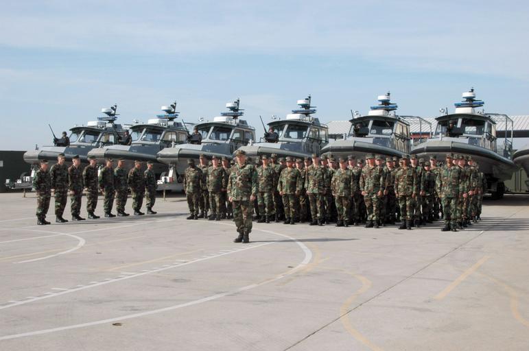 MAKE A MEME View Large Image Navy 060201-N-4021H-097 Members of the Naval Coastal Warfare Squadron Five (NCWRON-5) stand in formation in front of SeaARK patrol boats during their commissioning ceremony.jpg en San Diego Feb 01 2006 - Members of the Naval Coastal Warfare ...
