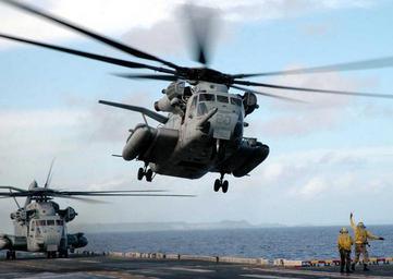 | Keywords: US Navy 060219-N-0237L-043 Aboard the amphibious assault ship USS Essex (LHD 2), two CH-53E Super Stallions belonging to Marine Air Combat Element (HM) 262 depart the flight deck.jpg en Off the Coast of Southern Leyte Republic of the Philippines Feb 19 2006 Aboard the amphibious assault ship USS Essex LHD 2 two CH-53E Super Stallions belonging to Marine Air Combat Element HM 262 depart the flight deck carrying Commodore Mark Donahue Amphibious Squadron Eleven and U S Marine Corps Col Walter L Miller from the 31st Marine Expeditionary Unit to survey damage caused by a landslide on the Island of Leyte Accompanying the survey team were Forty-eight U S Marines and digging equipment to immediately assist with the rescue efforts Essex along with the dock landing ship USS Harpers Ferry LSD 49 are part of the Forward Deployed Amphibious Ready Group the Navy s only forward-deployed amphibious force homeported in Sasebo Japan U S Navy Photo by Photographer s Mate Airman Christian Lemus RELEASED 2006-02-19 060219-N-0237L-043 Navy http //www navy mil/view_image asp id 32067 U S Navy Photo by Photographer s Mate Airman Christian Lemus PD-USGov-Military-Navy Images from US Navy location Off the coast of Southern Leyte Republic of the Philippines CH-53E US Marine Corps |