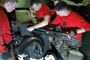 | Keywords: US Navy 060219-N-2908M-029 Aviation Ordnancemen assigned to the Fist of the Fleet of Strike Fighter Squadron Two Five (VFA-25) perform a post-fire check on an M61A1 20mm automatic gun.jpg en Indian Ocean Feb 19 2006 - Aviation Ordnancemen assigned to the Fist of the Fleet of Strike Fighter Squadron Two Five VFA-25 perform a post-fire check on an M61A1 20mm automatic gun in the hangar bay aboard the Nimitz-class aircraft carrier USS Ronald Reagan CVN 76 Reagan is currently underway on its maiden deployment in support of the global war on terrorism and maritime security operations U S Navy photo by Illustrator Draftsman Seaman Jack McCann RELEASED 2006-02-19 060219-N-2908M-029 Navy http //www navy mil/view_image asp id 32123 U S Navy photo by Illustrator Draftsman Seaman Jack McCann PD-USGov-Military-Navy Hangar bays of USS Ronald Reagan CVN-76 Aviation Ordnanceman Strike Fighter Squadron 25 United States Navy |