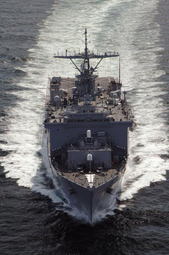 | Keywords: US Navy 060219-N-4374S-005 The amphibious dock landing ship USS Carter Hall (LSD 50) transit the Persian Gulf.jpg en Persian Gulf Feb 19 2006 - The amphibious dock landing ship USS Carter Hall LSD 50 transit the Persian Gulf following a replenishment at sea RAS with the British Royal Fleet Auxiliary ship RFA Bayleaf A 109 Carter Hall is currently on a regularly scheduled deployment conducting maritime security operations MSO MSO sets the conditions for security and stability in the maritime environment as well as complement the counter-terrorism and security efforts of regional nations U S Navy photo by Photographer's Mate 2nd Class Michael J Sandberg RELEASED 2006-02-19 060219-N-4374S-005 Navy http //www navy mil/view_image asp id 32206 U S Navy photo by Photographer's Mate 2nd Class Michael J Sandberg PD-USGov-Military-Navy Front views of ships Aboard USS Carter Hall LSD-50 Naval ships in motion |