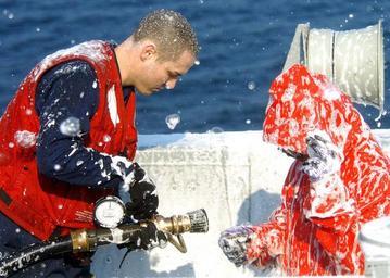 | Keywords: US Navy 060329-N-0490C-005 Damage Controlman Fireman Kyle M. Woehler and Damage Controlman 3rd Class Christine M. Haselton assigned to the Nimitz-class aircraft carrier USS Dwight D. Eisenhower (CVN 69) collect samples of Aqueo.jpg en Atlantic Ocean March 29 2006 - Damage Controlman Fireman Kyle M Woehler and Damage Controlman 3rd Class Christine M Haselton assigned to the Nimitz-class aircraft carrier USS Dwight D Eisenhower CVN 69 collect samples of Aqueous Film Forming Foam AFFF on the flight deck during a test of the AFFF sprinkler system Eisenhower is currently underway conducting Inspection and Survey INSURV U S Navy photo by Photographer s Mate 2nd Class Miguel Angel Contreras RELEASED 2006-03-29 060329-N-0490C-005 Navy http //www navy mil/view_image asp id 33197 U S Navy photo by Photographer s Mate 2nd Class Miguel Angel Contreras PD-USGov-Military-Navy Aboard USS Dwight D Eisenhower CVN-69 Aqueous Film Forming Foam Damage Controlman |