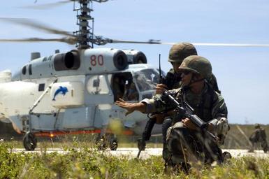 | Keywords: US Navy 060331-N-9167V-281 Sailors assigned to Mobile Security Squadron Seven (MSS-7) kneel in front of a Russian KA-27 Helix helicopter as it lands on board Naval Base Guam, during a joint humanitarian assistance, disaster rel.jpg  en Santa Rita Guam March 31 2006 - Sailors assigned to Mobile Security Squadron Seven MSS-7 kneel in front of a Russian KA-27 Helix helicopter as it lands on board Naval Base Guam during a joint humanitarian assistance disaster relief exercise Russian Federated Navy ships and U S Navy ships are participating in the exercise PASSEX 06 designed to increase interoperability between the two Countries while enhancing the strong cooperative relationship between Russia and the United States U S Navy photo by Photographer's Mate 2nd Class Edward N Vasquez RELEASED 2006-03-31 060331-N-9167V-281 Navy http //www navy mil/view_image asp id 33255 U S Navy photo by Photographer's Mate 2nd Class Edward N Vasquez PD-USGov-Military-Navy Naval Base Guam United States Navy Mobile Security Squadron 7 Kamov Ka-27 Military exercises in 2006 |