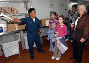 | Keywords: US Navy 060503-N-9860Y-127 Culinary Specialist 2nd Class Josue B. Milan, shows USS Blue Ridge (LCC 19) and 7th Fleet friends and family members around the shipUs bake shop.jpg en Tokyo-Wan Japan May 3 2006 - Culinary Specialist 2nd Class Josue B Milan shows USS Blue Ridge LCC 19 and 7th Fleet friends and family members around the shipUs bake shop Blue Ridge is currently underway hosting a two-day family and friends cruise U S Navy photo by Photographer's Mate 3rd Class Tucker M Yates RELEASED 2006-05-03 060503-N-9860Y-127 Navy http //www navy mil/view_image asp id 34122 U S Navy photo by Photographer's Mate 3rd Class Tucker M Yates PD-USGov-Military-Navy Images from US Navy location Tokyo Bay Japan Culinary specialist United States Navy Aboard USS Blue Ridge LCC-19 |