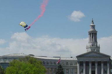 | Keywords: US Navy 060506-N-0772H-002 Navy File Photo.jpg en Denver May 6 2006 - A U S Navy Parachute Demonstration Team RThe Leap Frogs S crew member descend into Civic Park near City Hall during Denver Navy Week and Cinco de Mayo festivities Navy Week Denver is one of 20 such weeks are planned this year in cities throughout the U S arranged by the Navy Office of Community Outreach NAVCO U S Navy photo by Personnel Specialist 1st Class Michael Hernandez RELEASED 2006-05-06 060506-N-0772H-002 Navy http //www navy mil/view_image asp id 34218 U S Navy photo by Personnel Specialist 1st Class Michael Hernandez PD-USGov-Military-Navy Images from US Navy location Denver Personnel Specialist United States Navy United States Navy Parachute Team Denver Navy Week |