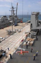 | Keywords: US Navy 060519-N-9851B-001 An aerial target drone (BQM-74E) is lowered by crane on to the deck of the dock landing ship USS Tortuga (LSD 46).jpg en Okinawa Japan May 19 2006 - An aerial target drone BQM-74E is lowered by crane on to the deck of the dock landing ship USS Tortuga LSD 46 Tortuga is currently in port at Commander Fleet Activities Okinawa while supporting Southeast Asia Cooperation Against Terrorism SEACAT exercises SEACAT is a scenario-based exercise where the Navies of various Southeast Asian Nations operate with the U S Navy in tracking and boarding simulated rogue merchant ships U S Navy photo by Photographer's Mate 2nd Class John L Beeman RELEASED 2006-05-19 060519-N-9851B-001 Navy http //www navy mil/view_image asp id 34683 U S Navy photo by Photographer's Mate 2nd Class John L Beeman PD-USGov-Military-Navy Aboard USS Tortuga LSD-46 BQM-74 Chukar Southeast Asia Cooperation Against Terrorism 2006 |