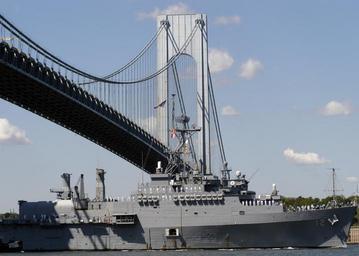 | Keywords: US Navy 060524-N-9640H-006 Amphibious transport dock ship USS Shreveport (LPD 12) sails under the Verrazano-Narrows Bridge headed for Stapleton Pier on Staten Island.jpg en New York Harbor May 24 2006 - Amphibious transport dock ship USS Shreveport LPD 12 sails under the Verrazano-Narrows Bridge headed for Stapleton Pier on Staten Island while participating in Fleet Week New York City 2006 Fleet Week has been sponsored by New York City since 1984 in celebration of the United States sea service The annual event also provides an opportunity for citizens of New York City and the surrounding Tri-State area to meet Sailors and Marines as well as witness first hand the latest capabilities of todayUs Navy and Marine Corps team Fleet week includes dozens of military demonstrations and displays including public tours of many of the participating ships U S Navy photo by Photographer's Mate 2nd Class Gabriela Hurtado RELEASED 2006-05-24 060524-N-9640H-006 Navy http //www navy mil/view_image asp id 34906 U S Navy photo by Photographer's Mate 2nd Class Gabriela Hurtado PD-USGov-Military-Navy Fleet Week New York 2006 New York Harbor USS Shreveport LPD-12 Bridge supports |