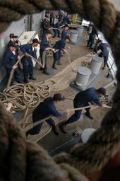 | Keywords: US Navy 060526-N-1332Y-099 Deck Department Sailors heave on mooring lines as USS Kitty Hawk (CV 63) prepares to depart its forward-deployed operating port of Yokosuka, Japan.jpg en Yokosuka Japan May 26 2006 - Deck Department Sailors heave on mooring lines as USS Kitty Hawk CV 63 prepares to depart its forward-deployed operating port of Yokosuka Japan Kitty Hawk's deck department is responsible for maintaining the ship's hull manning the small boats and providing expert seamanship services Currently under way in the 7th Fleet area of responsibility AOR Kitty Hawk demonstrates power projection and sea control as the U S Navy's only permanently forward-deployed aircraft carrier U S Navy photo by Photographer's Mate Airman Adam York RELEASED 2006-05-26 060526-N-1332Y-099 Navy http //www navy mil/view_image asp id 35225 U S Navy photo by Photographer's Mate Airman Adam York PD-USGov-Military-Navy United States Fleet Activities Yokosuka Aboard USS Kitty Hawk CV-63 |