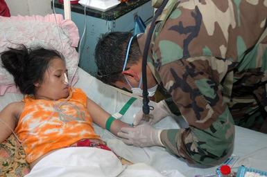 | Keywords: US Navy 060530-N-3931M-102 U.S. Navy Hospital Corpsman 3rd Class Umair Iqbal of Bayshore, N.Y., draws blood from a patient for medical testing in the Intensive Care Unit (ICU) at the Zamboanga Medical Center.jpg en Zamboanga Philippines May 30 2006 U S Navy Hospital Corpsman 3rd Class Umair Iqbal of Bayshore N Y draws blood from a patient for medical testing in the Intensive Care Unit ICU at the Zamboanga Medical Center while the U S Military Sealift Command MSC hospital ship USNS Mercy T-AH 19 visits the city on a scheduled humanitarian visit The medical crew aboard Mercy will provide general and ophthalmology surgery basic medical evaluation and treatment preventive medicine treatment dental screenings and treatment optometry screenings eyewear distribution public health training and veterinary services as requested by the host nations Like all U S Naval forces Mercy is able to rapidly respond to a range of situations on short notice Mercy is uniquely capable of supporting medical and humanitarian assistance needs and is configured with special medical equipment and a robust multi-specialized medical team who can provide a range of services ashore as well as aboard the ship The medical staff is augmented with an assistance crew many of whom are part of non-governmental organizations which have significant medical capabilities U S Navy photo by Photographer's Mate 1st Class Michael R McCormick RELEASED 2006-05-30 060530-N-3931M-102 Navy http //www navy mil/view_image asp id 35263 U S Navy photo by Photographer's Mate 1st Class Michael R McCormick personality rights PD-USGov-Military-Navy Intensive-care units United States Navy in Zamboanga City Aboard USNS Mercy T-AH-19 Venipunctures Tourniquets |