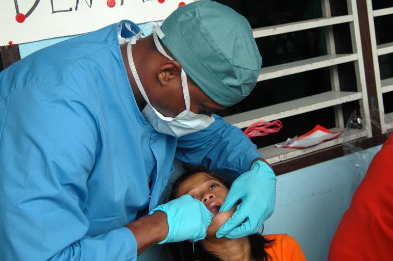 MAKE A MEME View Large Image Navy 060530-N-3153C-010 U.S. Navy Lt. James Harris, a dentist aboard the U.S. Military Sealift Command (MSC) hospital ship, USNS Mercy (T-AH 19) examines the teeth of a young child during a Medical-Dental Civil Action Progra.jpg en ...
