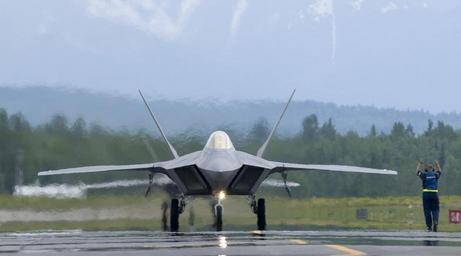 | Keywords: US Navy 060607-F-7049H-002 A crew chief assigned to the 1st Fighter Wing, Langley Air Force Base, Va., directs an F-22A Raptor.jpg en Elemendorf Alaska June 7 2006 - A crew chief assigned to the 1st Fighter Wing Langley Air Force Base Va directs an F-22A Raptor as it taxis down the runway after completion of its mission during exercise Northern Edge 2006 U S Air Force photo by Senior Airman Garrett Hothen RELEASED 2006-06-07 060607-F-7049H-002 Navy http //www navy mil/view_image asp id 35999 U S Navy photo PD-USGov-Military-Navy Images from US Navy location Elemendorf Alaska Northern Edge 2006 Lockheed Martin F-22 Raptor Front views of aircraft Marshallers |