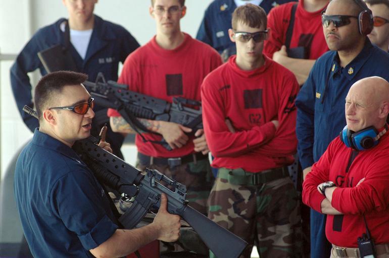 Keywords: US Navy 060612-N-3946H-065 Gunner's Mate 1st Class Walton Ciferri discusses proper procedures for loading and firing an M-203 grenade launcher, during a training exercise.jpg en Pacific Ocean June 12 2006 - Gunner's Mate 1st Class Walton Ciferri discusses proper procedures for loading and firing an M-203 grenade launcher during a training exercise on the fantail aboard the conventionally-powered aircraft carrier USS Kitty Hawk CV 63 Currently under way in the 7th Fleet area of responsibility AOR Kitty Hawk demonstrates power projection and sea control as the U S Navy's only permanently forward-deployed aircraft carrier operating from Yokosuka Japan U S Navy photo by Photographer's Mate Airman Patrick L Heil RELEASED 2006-06-12 060612-N-3946H-065 Navy http //www navy mil/view_image asp id 35746 U S Navy photo by Photographer's Mate Airman Patrick L Heil PD-USGov-Military-Navy M16 rifle with M203 Males with M203 Aboard USS Kitty Hawk CV-63 Gunner's Mate
