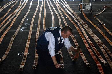 | Keywords: US Navy 060617-N-5549O-112 Aviation Boatswain's Mate Airman Matthew Hutchens inspects fire hoses prior to conducting a hydrostatic test.jpg en Philippine Sea June 17 2006 - Aviation Boatswain's Mate Airman Matthew Hutchens inspects fire hoses prior to conducting a hydrostatic test to determine the integrity and water pressure of each hose aboard the Nimitz-class aircraft carrier USS Ronald Reagan CVN 76 Ronald Reagan and Carrier Air Wing One Four CVW-14 are currently on a regularly scheduled deployment in support of the global war on terrorism and maritime security operations MSO and participating in Exercise Valiant Shield 2006 Valiant Shield focuses on integrated joint training among U S military forces enabling real-world proficiency in sustaining joint forces and in detecting locating tracking and engaging units at sea in the air on land and cyberspace in response to a range of mission areas U S Navy photo by Photographer's Mate 3rd Class Kevin S O'Brien RELEASED 2006-06-17 060617-N-5549O-112 Navy http //www navy mil/view_image asp id 35919 U S Navy photo by Photographer's Mate 3rd Class Kevin S O'Brien PD-USGov-Military-Navy Aviation Boatswain's Mates Valiant Shield 2006 Aboard USS Ronald Reagan CVN-76 |