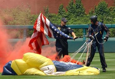 | Keywords: US Navy 060618-N-4729H-096 A member of the Navy Parachute Team Leapfrogs unhooks the American flag from the Team Officer in Charge, Lt. Geoff Reeves, after his jump in to Citizens Bank Park.jpg en Philadelphia June 18 2006 - A member of the Navy Parachute Team Leapfrogs unhooks the American flag from the Team Officer in Charge Lt Geoff Reeves after his jump in to Citizens Bank Park during the Philadelphia Phillies' pre-game Father's Day show Several of Leapfrogs team members delivered game balls to the team one of which was used as the first pitch thrown by Supreme Court Justice Samuel Alito The Leapfrogs were in town performing on board Naval Air Station Joint Reserve Base Willow Grove Air Show over the weekend U S Navy photo by Chief Journalist Monica Hallman RELEASED 2006-06-18 060618-N-4729H-096 Navy http //www navy mil/view_image asp id 36029 U S Navy photo by Chief Journalist Monica Hallman PD-USGov-Military-Navy Images from US Navy location Philadelphia PA |