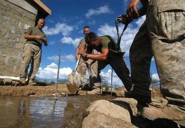 | Keywords: US Navy 060811-N-0411D-016 U.S. Marine Elias Hunerdosse, center, of LaHarpe, Ill., settles mortar in the foundation of a water tower.jpg en Riongo Kenya Aug 11 2006 - U S Marine Elias Hunerdosse center of LaHarpe Ill settles mortar in the foundation of a water tower The U S Marine 6th Engineering Support Battalion EBS worked together with Kenyan Army Construction Engineers to build a water tower capable of holding 50 cubic meters of water and a school building addition from cement blocks The 6th EBS is participating in Natural Fire as their period of Reserve Annual Training Natural Fire is the largest combined exercise between Eastern African community nations and the United States It will include medical veterinary and engineering civic affairs programs in addition to military exercises U S Navy photo by Mass Communication Specialist 2nd Class Roger S Duncan RELEASED 2006-08-11 060811-N-0411D-016 Navy http //www navy mil/view_image asp id 38369 U S Navy photo by Mass Communication Specialist 2nd Class Roger S Duncan PD-USGov-Military-Navy United States Navy in Riongo Kenya |