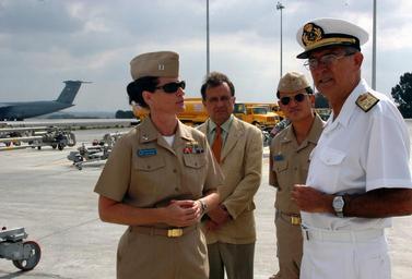 | Keywords: US Navy 060814-N-8539M-002 Naval Station Rota Fuels Officer, Lt. Christin Crowley, left, explains the capabilities of Rota's new fuel hydrant system.jpg en Rota Spain Aug 14 2006 - Naval Station Rota Fuels Officer Lt Christin Crowley left explains the capabilities of Rota's new fuel hydrant system to Admiral-in-Chief Rota Naval Base Rear Adm Ricardo Gomez Enriquez while Naval Station Rota Spanish Protocol Officer Mr Carlos Corcoles and Commanding Officer Naval Station Rota Capt Earl K Hampton Jr listen to the explanation Rota's new underground fuel hydrants allow the refueling of four C5 Galaxy aircraft simultaneously U S Navy photo by Lt Mike Morley RELEASED 2006-08-14 060814-N-8539M-002 Navy http //www navy mil/view_image asp id 38039 U S Navy photo by Lt Mike Morley PD-USGov-Military-Navy Admirals of Spain People at Naval Station Rota |