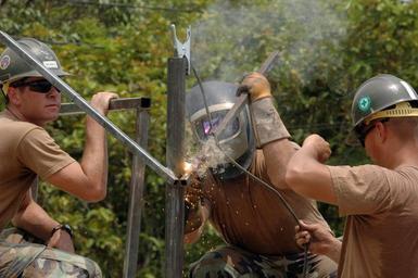 | Keywords: US Navy 060816-N-3153C-055 Navy Steel Worker 3rd Class Mathew Martin of Philadelphia, welds a frame for a basketball goal at the Tarakan School.jpg en Tarakan Indonesia Aug 16 2006 - Navy Steel Worker 3rd Class Mathew Martin of Philadelphia attached to Naval Mobile Construction Battalion Four Zero NMCB 40 embarked aboard the Military Sealift Command MSC hospital ship USNS Mercy T-AH 19 welds a frame for a basketball goal at the Tarakan School Mercy is currently off the coast to provide humanitarian and civic assistance to the people of this small island Mercy is in the fourth month of her five-month humanitarian and civic assistance deployment to South and Southeast Asia where her crew has already treated thousands of people U S Navy photo by Mass Communication Specialist Seaman Ryan Clement RELEASED 2006-08-16 060816-N-3153C-055 Navy http //www navy mil/view_image asp id 38070 U S Navy photo by Mass Communication Specialist Seaman Ryan Clement PD-USGov-Military-Navy Images from US Navy location Tarakan Indonesia |