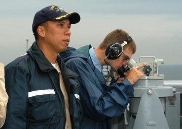 | Keywords: US Navy 060901-N-2716P-027 USS Gary (FFG 51) Commanding Officer, Cmdr. Joseph Deleon, looks out from the bridge wing as Quartermaster Seaman Michael Lind takes a bearing reading.jpg en Yokosuka Bay Sept 1 2006 - USS Gary FFG 51 Commanding Officer Cmdr Joseph Deleon looks out from the bridge wing as Quartermaster Seaman Michael Lind takes a bearing reading Gary went to Tokyo to participate in the Tokyo Metropolitan Government Disaster Drill U S Navy photo by Mass Communication Specialist 1st Class Paul J Phelps RELEASED 2006-09-01 060901-N-2716P-027 Navy http //www navy mil/view_image asp id 38860 U S Navy photo by Mass Communication Specialist 1st Class Paul J Phelps PD-USGov-Military-Navy USS Gary FFG-51 Alidades |