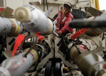 | Keywords: US Navy 060908-N-9742R-081 Aviation Ordnanceman Airman Wong Thao, of St. Paul, Minn., cleans and inspects ordnance staged in the bomb farm on the flight deck aboard the aircraft carrier USS Enterprise (CVN 65).jpg en Arabian Sea Sept 8 2006 - Aviation Ordnanceman Airman Wong Thao of St Paul Minn cleans and inspects ordnance staged in the bomb farm on the flight deck aboard the aircraft carrier USS Enterprise CVN 65 The Enterprise Carrier Strike Group and embarked Carrier Air Wing One CVW-1 are currently on a scheduled six-month deployment in support of the Global War on Terrorism For the last five consecutive days aircraft assigned to CVW-1 have provided support to International Security Assistance Force ISAF troops on the ground as part of Operations Medusa and Enduring Freedom near Kandahar Afghanistan Coordinated with coalition air forces and ISAF troops on the ground Enterprise aircraft provided close air support for ISAF troops encountering resistance from Taliban extremists in multiple locations around Kandahar Sept 6 and Sept 7 U S Navy photo by Mass Communication Specialist 2nd Class Milosz Reterski RELEASED 2006-09-08 060908-N-9742R-081 Navy http //www navy mil/view_image asp id 38954 U S Navy photo by Mass Communication Specialist 2nd Class Milosz Reterski PD-USGov-Military-Navy Aboard USS Enterprise CVN-65 Aviation Ordnanceman War in Afghanistan 2001-present related operations outside of Afghanistan Operation Medusa War in Afghanistan in 2006 |