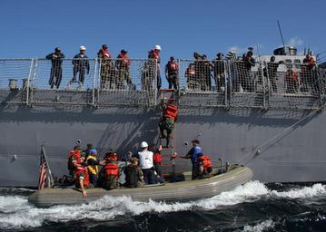 | Keywords: US Navy 061023-N-4953E-005 A visit, board, search, and seizure team assigned to guided-missile destroyer USS Stethem (DDG 63) and a Philippine Navy Special Operations Group (NAVSOG) board a rigid hull inflatable boat (RHIB).jpg en Philippine Sea Oct 23 2006 - A visit board search and seizure team assigned to guided-missile destroyer USS Stethem DDG 63 and a Philippine Navy Special Operations Group NAVSOG board a rigid hull inflatable boat RHIB for training off the coast of the Philippines The two groups trained in close battle combat CBC and pier movement on board an oil rig Stethem is currently off the coast of the Philippines participating in bilateral exercises Exercise Talon Vision TV 07 and Amphibious Landing Exercise PHIBLEX 07 Stethem is currently a part of the forward-deployed naval force stationed in Yokosuka Japan U S Navy photo by Ensign Danny Ewing Jr RELEASED 2006-10-23 061023-N-4953E-005 Navy http //www navy mil/view_image asp id 40237 U S Navy photo by Ensign Danny Ewing Jr PD-USGov-Military-Navy Rigid-hulled inflatable boats Aboard USS Stethem DDG-63 Photographs by Danny Ewing Jr |