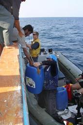 | Keywords: US Navy 061110-N-6397K-005 Responding to a distress call, Sailors assigned to a rescue and assistance team from the U.S. Navy guided-missile cruiser USS Anzio (CG 68), provide aid to the motor vessel SINAA, a 35-meter Iranian-f.jpg en Arabian Sea Nov 10 2006 Responding to a distress call Sailors assigned to a rescue and assistance team from the U S Navy guided-missile cruiser USS Anzio CG 68 provide aid to the motor vessel SINAA a 35-meter Iranian-flagged dhow Anzio supplied the dhow with water fuel and food to sustain her crew of 24 for their transit home Anzio is deployed as part of the Eisenhower Carrier Strike Group IKE CSG supporting Maritime Security Operations MSO in the 5th Fleet area of operations MSO seek to preserve the free and secure use of the world's oceans by legitimate mariners and prevent terrorist from attempting to use the maritime environment as a venue for attack or as a medium to transport personnel weapons or other material that could support their efforts U S Navy photo by Ensign Patrick King RELEASED 2006-11-10 061110-N-6397K-005 Navy http //www navy mil/view_image asp id 40683 U S Navy photo by Ensign Patrick King PD-USGov-Military-Navy Aboard USS Anzio CG-68 |