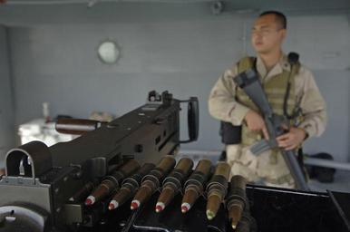 | Keywords: US Navy 061116-N-8148A-045 Master-at-Arms 2nd Class Jeff Phan, attached to Mobile Security Squadron Three (MSS-3), stands a fixed post watch behind a .50-caliber machine gun, while conducting his security watch.jpg en Jebel Ali United Arab Emirates Nov 16 2006 - Master-at-Arms 2nd Class Jeff Phan attached to Mobile Security Squadron Three MSS-3 stands a fixed post watch behind a 50-caliber machine gun while conducting his security watch MSS-3 squadron personnel are currently on board USNS Supply T-AOE 6 providing force protection in support of Maritime Security Operations MSO MSO help set the conditions for security and stability in the maritime environment as well as complement the counter-terrorism and security efforts of regional nations U S Navy photo by Mass Communication Specialist 2nd Class Kitt Amaritnant RELEASED 2006-11-16 061116-N-8148A-045 Navy http //www navy mil/view_image asp id 40982 U S Navy photo by Mass Communication Specialist 2nd Class Kitt Amaritnant PD-USGov-Military-Navy Images from US Navy location Jebel Ali United Arab Emirates Browning M2 of the US Navy Males with M16 rifle Master-at-arms United States Navy Mobile Security Squadron 3 People with ammunition belts 50 BMG Aboard USNS Supply T-AOE-6 |