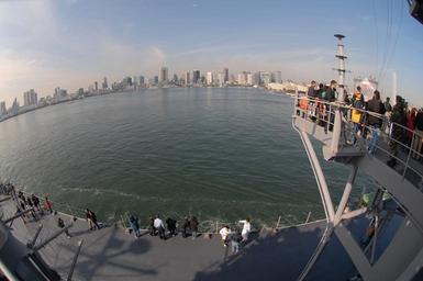| Keywords: US Navy 061118-N-6997B-071 Sailors, friends and family members of USS Blue Ridge (LCC 19) watch as the ship makes its approach toward Tokyo^rsquo,s Harumi during the ship^rsquo,s Friends and Family Day Cruise.jpg en Yokosuka Japan Nov 18 2006 - Sailors friends and family members of USS Blue Ridge LCC 19 watch as the ship makes its approach toward Tokyo s Harumi during the ship s Friends and Family Day Cruise After a few days of sea trials the U S Seventh Fleet flagship returned to her homeport of Yokosuka Japan to embark more than 400 friends and family members for her transit to Tokyo U S Navy photo by Mass Communication Specialist 2nd Class Keith Bryska RELEASED 2006-11-18 061118-N-6997B-071 Navy http //www navy mil/view_image asp id 40962 U S Navy photo by Mass Communication Specialist 2nd Class Keith Bryska PD-USGov-Military-Navy United States Fleet Activities Yokosuka Aboard USS Blue Ridge LCC-19 |