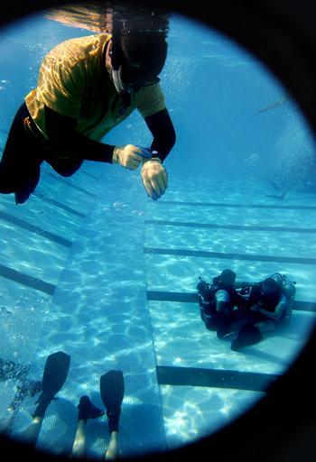 | Keywords: US Navy 061206-G-3721C-240 An instructor with Naval Diving and Salvage Training Center monitors the time during a confidence training exercise as part of a scuba certification course.jpg en Panama City Fla Dec 6 2006 - An instructor with Naval Diving and Salvage Training Center monitors the time during a confidence training exercise as part of a scuba certification course Confidence training is a portion of a five-week course designed to test the students' reactions to real-world emergency situations U S Coast Guard photo by Public Affairs Specialist 1st Class NyxoLyno Cangemi RELEASED 2006-12-06 061206-G-3721C-240 Navy http //www navy mil/view_image asp id 41623 U S Navy photo PD-USGov-Military-Navy Naval Diving and Salvage Training Center Underwater photographs |