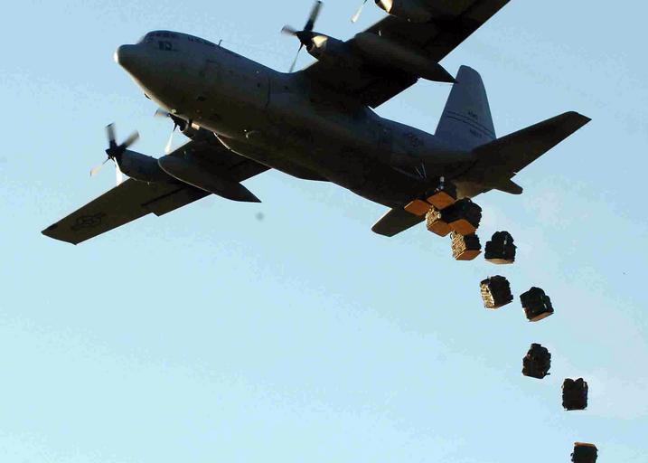 | Keywords: US Navy 061210-N-7770P-007 Bundles of shelters and mosquito nets are dropped from a U.S. Air Force C-130 cargo plane onto a field in rural Kenya.jpg en Dadaab Kenya Dec 9 2006 - Bundles of shelters and mosquito nets are dropped from a U S Air Force C-130 cargo plane onto a field in rural Kenya The material is to help 160 000 victims of recent flooding in Kenya who have been cut off from the rest of the country by floodwaters that washed roads away Combined Joint Task Force - Horn of Africa service members were asked to provide the help and delivered about 150 metric tons of needed supplies U S Navy photo by Chief Mass Communication Specialist Robert Palomares RELEASED 2006-12-09 061210-N-7770P-007 Navy http //www navy mil/view_image asp id 41539 U S Navy photo by Chief Mass Communication Specialist Robert Palomares PD-USGov-Military-Navy Images from US Navy location Dadaab Kenya C-130 Hercules United States Air Force Airdropping from Lockheed C-130 Hercules 2006 in Kenya Mosquito nets |
