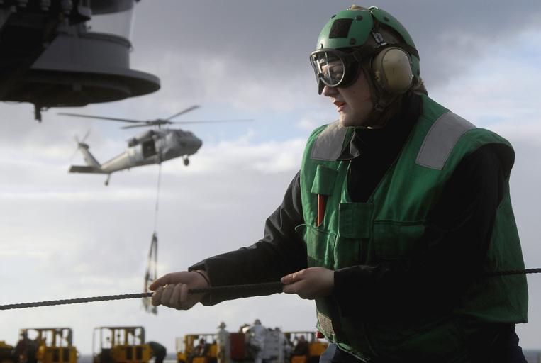| Keywords: US Navy 070112-N-1205S-193 Seaman Karisa Russell tends the phone and distance line on the flight deck aboard the nuclear powered aircraft carrier USS Nimitz (CVN 68).jpg en Pacific Ocean Jan 12 2007 - Seaman Karisa Russell tends the phone and distance line on the flight deck aboard the nuclear powered aircraft carrier USS Nimitz CVN 68 during a underway replenishment with the Military Sealift Command MSC ammunition ship USNS Shasta T-AE 33 Nimitz is currently underway conducting routine training exercises off the coast of Southern California U S Navy photo by Mass Communication Specialist 2nd Class Jeremiah Sholtis RELEASED 2007-01-12 070112-N-1205S-193 Navy http //www navy mil/view_image asp id 42080 U S Navy photo by Mass Communication Specialist 2nd Class Jeremiah Sholtis PD-USGov-Military-Navy Aboard USS Nimitz CVN-68 |