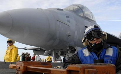 | Keywords: US Navy 070113-N-5345W-030 An air department tractor driver waits for the command to move an F-A-18F Super Hornet assigned to the Red Rippers of Strike Fighter Squadron One One (VFA-11) into position on the flight deck.jpg en Atlantic Ocean Jan 13 2007 - An air department tractor driver waits for the command to move an F/A-18F Super Hornet assigned to the Red Rippers of Strike Fighter Squadron One One VFA-11 into position on the flight deck of the Nimitz-class aircraft carrier USS Harry S Truman CVN 75 Truman is currently underway conducting flight deck certifications in the Atlantic Ocean U S Navy photo by Mass Communication Specialist 3rd Class Kristopher Wilson RELEASED 2007-01-13 070113-N-5345W-030 Navy http //www navy mil/view_image asp id 42132 U S Navy photo by Mass Communication Specialist 3rd Class Kristopher Wilson PD-USGov-Military-Navy F/A-18F Super Hornet on flight decks Strike Fighter Squadron 11 United States Navy USS Harry S Truman CVN-75 flight deck |