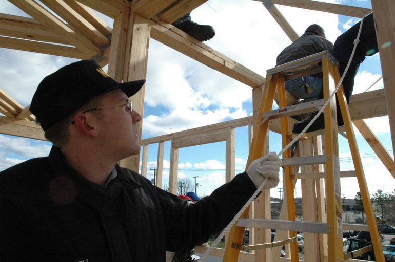 Keywords: US Navy 070117-N-2456S-107 Seaman Robert Purcell, a Sailor stationed aboard amphibious transport dock USS Nashville (LPD 13), holds a safety line to help move a roof truss to the top of a house being built for Habitat for Human.jpg en Norfolk Va Jan 17 2007 - Seaman Robert Purcell a Sailor stationed aboard amphibious transport dock USS Nashville LPD 13 holds a safety line to help move a roof truss to the top of a house being built for Habitat for Humanity in Norfolk Va The work being done by Nashville Sailors is part of a ship-wide goal to dedicate 6 000 hours of community service time to the local area this year U S Navy photo by Mass Communication Specialist Seaman John Suits RELEASED 2007-01-17 070117-N-2456S-107 Navy http //www navy mil/view_image asp id 42257 U S Navy photo by Mass Communication Specialist Seaman John Suits PD-USGov-Military-Navy Naval Station Norfolk Aboard USS Nashville LPD-13 |